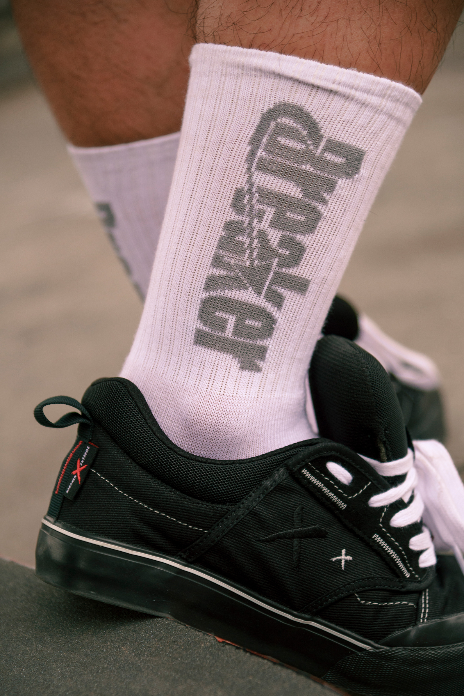 ถุงเท้านักเรียนแฟชั่น ผ้า cotton ผสม spandex นุ่มใส่สบาย พร้อมสกรีนลายสุดเท่ ลาย BREAKER แนวตั้งแบบเด่นๆ